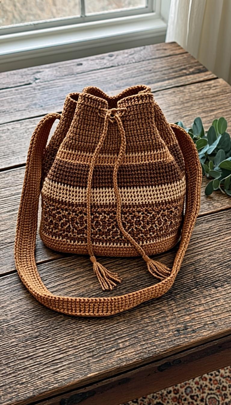 Crochet a base strip with built-in handle loops. Reinforce with extra rows.